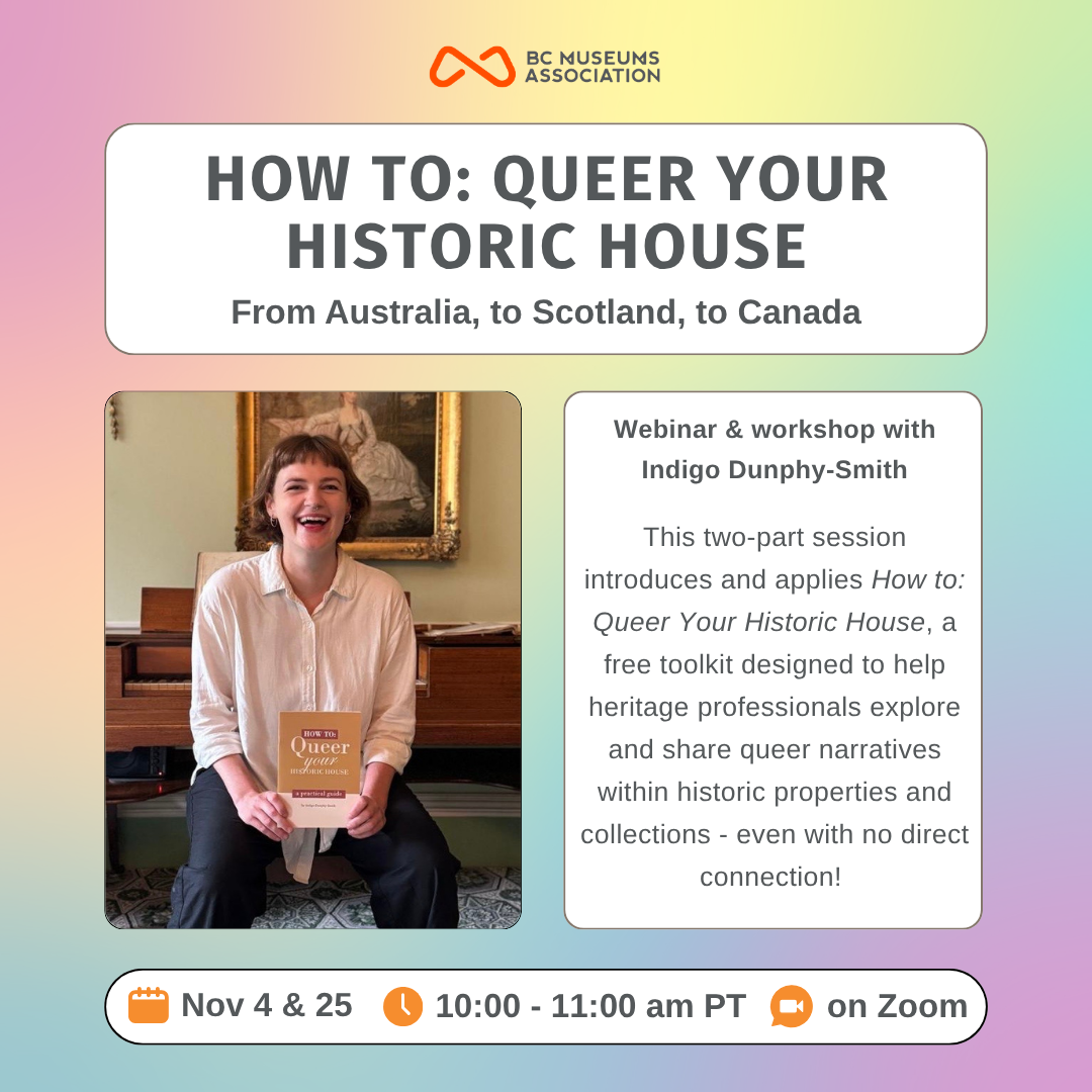 This two-part session introduces and applies How to: Queer Your Historic House, a free toolkit designed to help heritage professionals explore and share queer narratives within historic properties and collections - even with no direct connection! Developed through Indigo’s experience in heritage education and engagement across Australia and Scotland, the toolkit offers practical, budget-friendly methods to support more inclusive storytelling by rethinking how objects, spaces, and histories are interpreted.