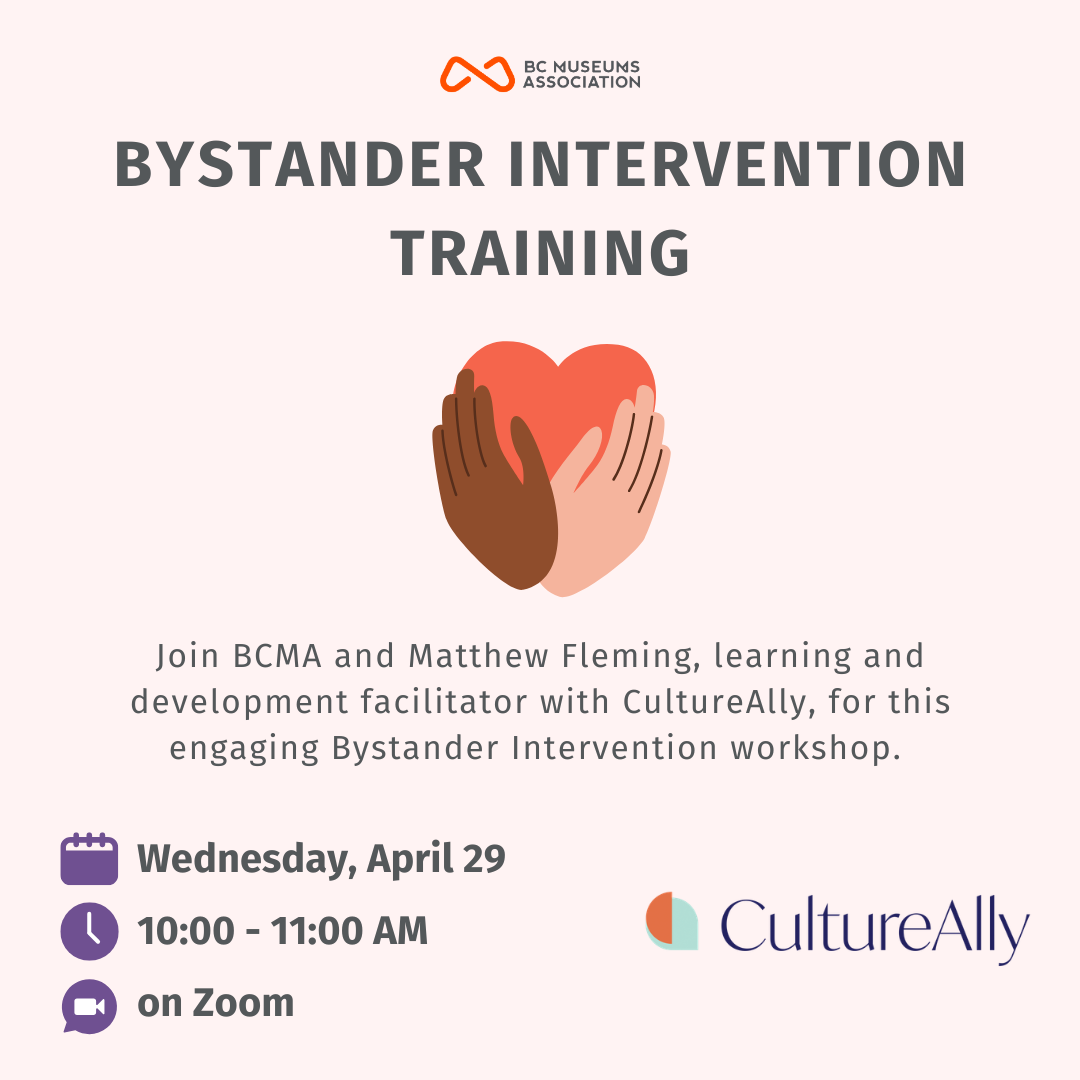 Join BCMA and Matthew Fleming, learning and development facilitator with CultureAlly, for this engaging Bystander Intervention workshop. This workshop is delivered in partnership with CultureAlly. CultureAlly helps build stronger cultures through interactive training, consulting, and eLearning that make it easier for teams to connect, grow, and lead with confidence.