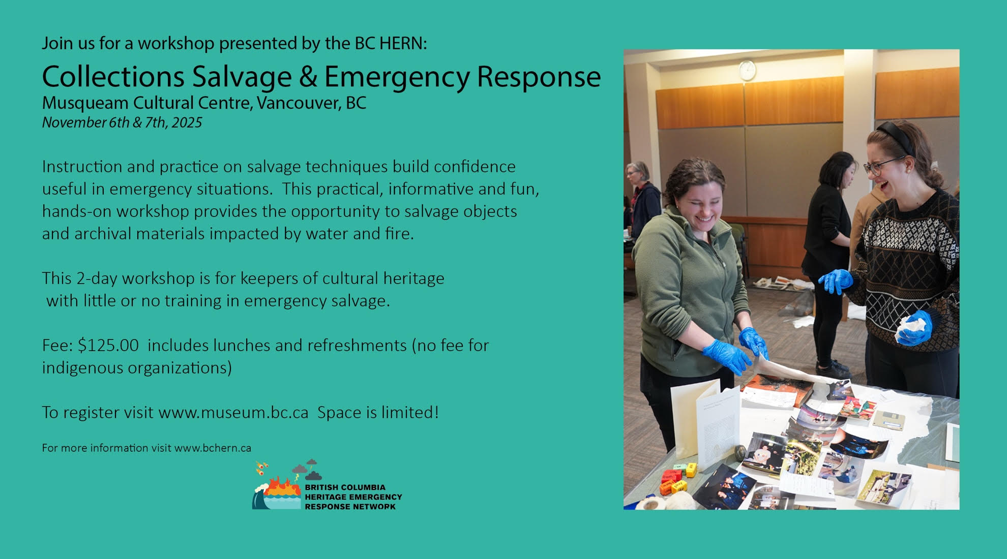 The BC Heritage Emergency Response Network (BC HERN) is excited to announce the following workshop: